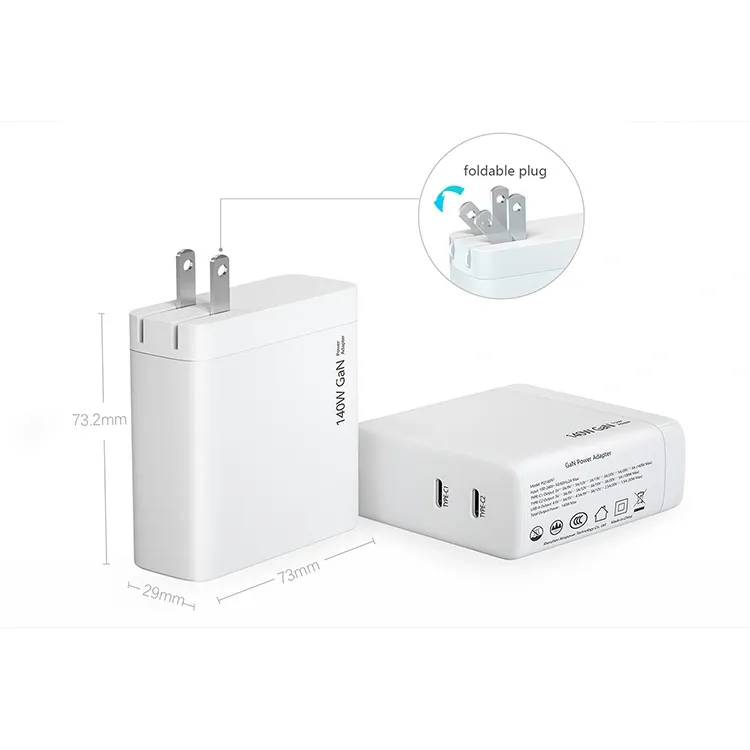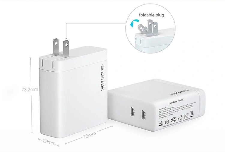 140W doble puerto USB C PD cargador enchufe de EE. UU. plegable Especificación: