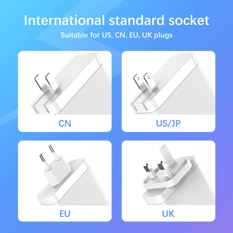 GAN: Con chips GaN, el tamaño del cargador PD de 140 W se reduce en un 50 % en comparación con los cargadores tradicionales, lo que facilita su transporte en viajes de negocios o uso en la oficina, sin ocupar espacio en la toma de corriente.