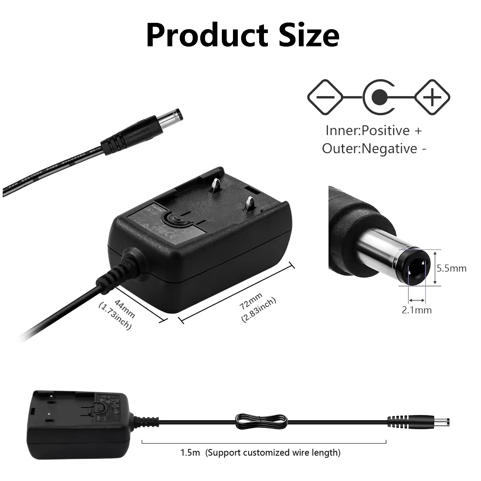 Amplia gama de escenarios de aplicación: ya sea para alimentar tiras de luz LED, parlantes inteligentes, enrutadores de red u otros pequeños electrodomésticos, esta potente fuente de alimentación con enchufe intercambiable conmutada es su opción más ideal y tranquilizadora.