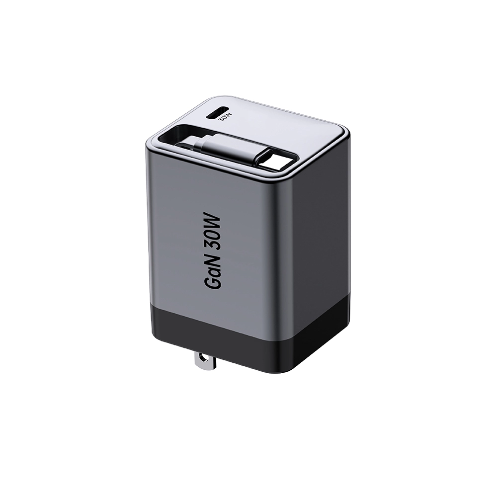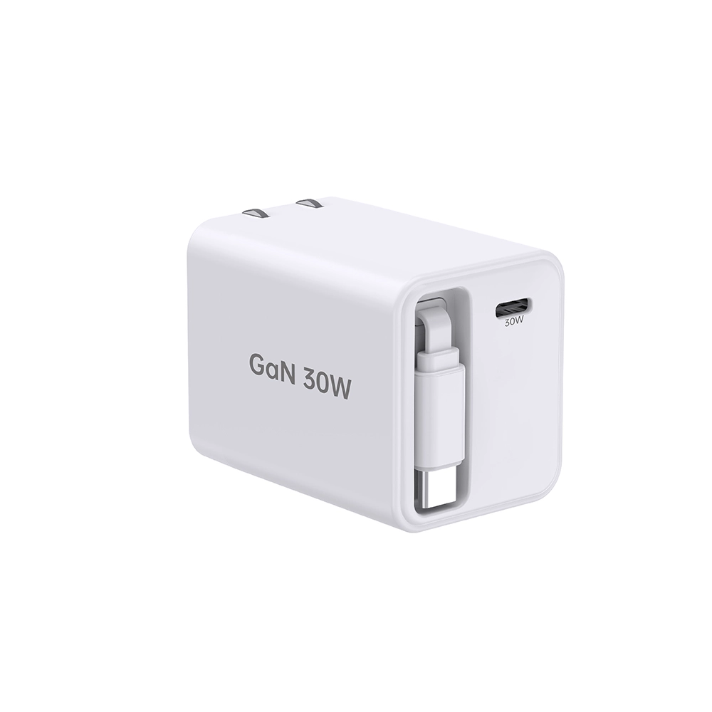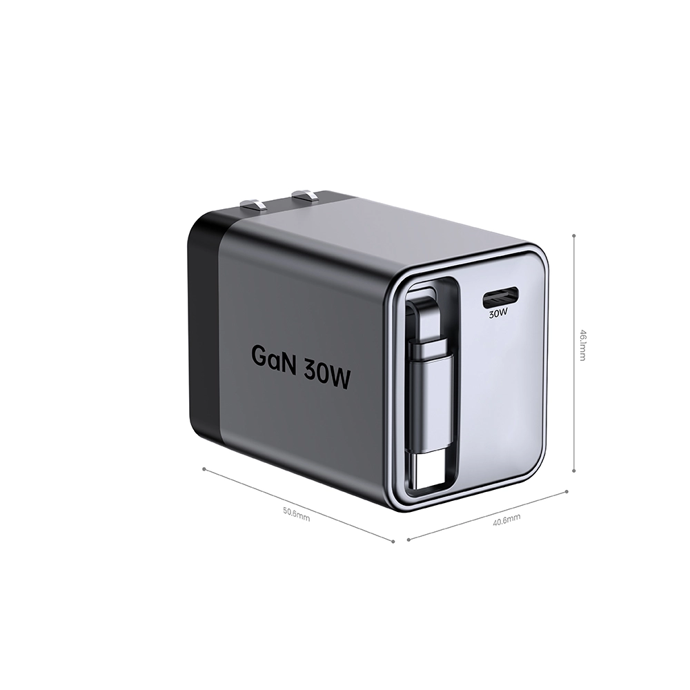 Cargador rápido plegable con enchufe estadounidense de 30 W con cable USB C retráctil Especificación: