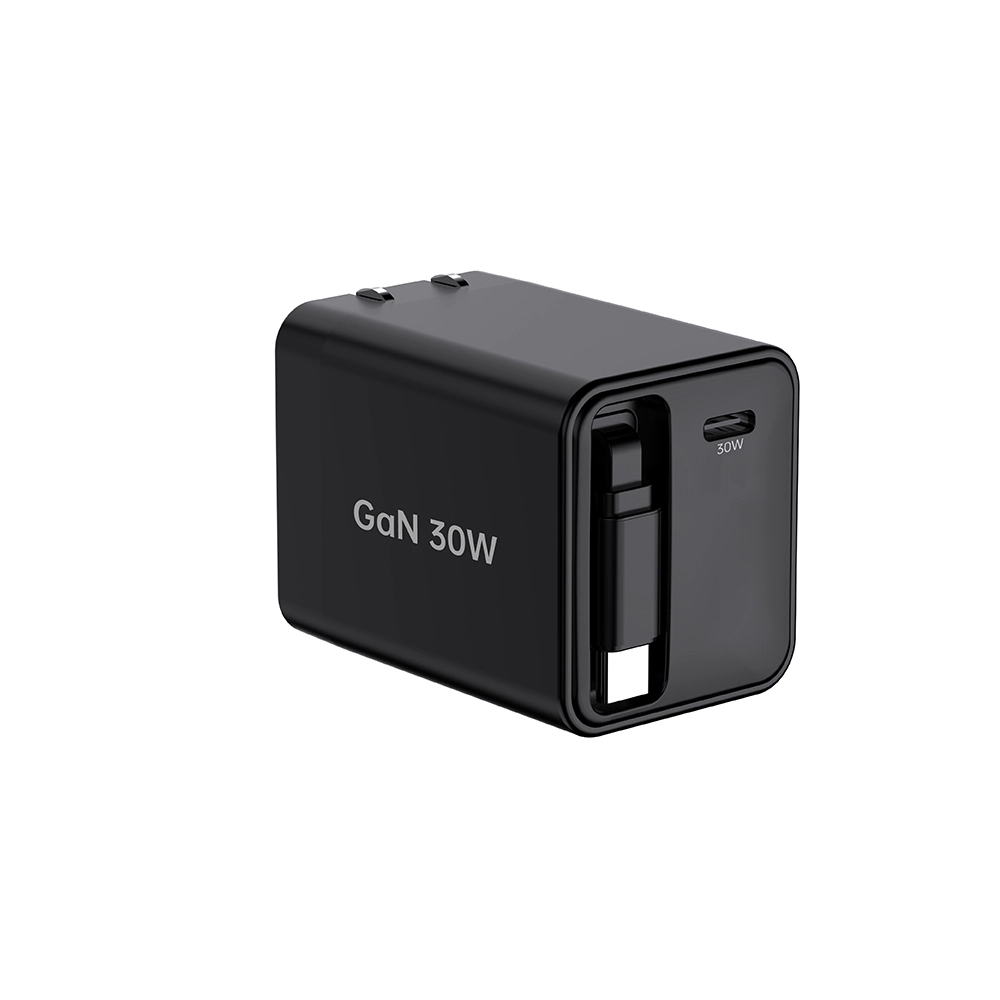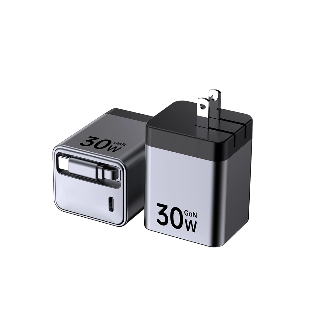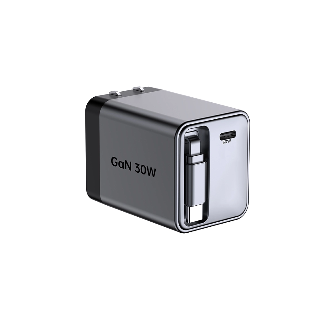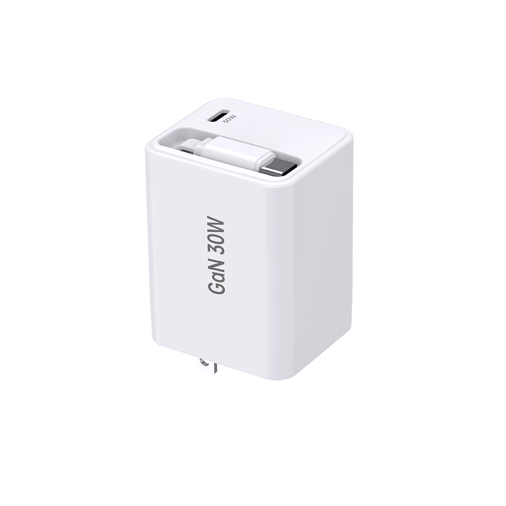 Cargador rápido plegable con enchufe estadounidense de 30 W con cable USB C retráctil Especificación: