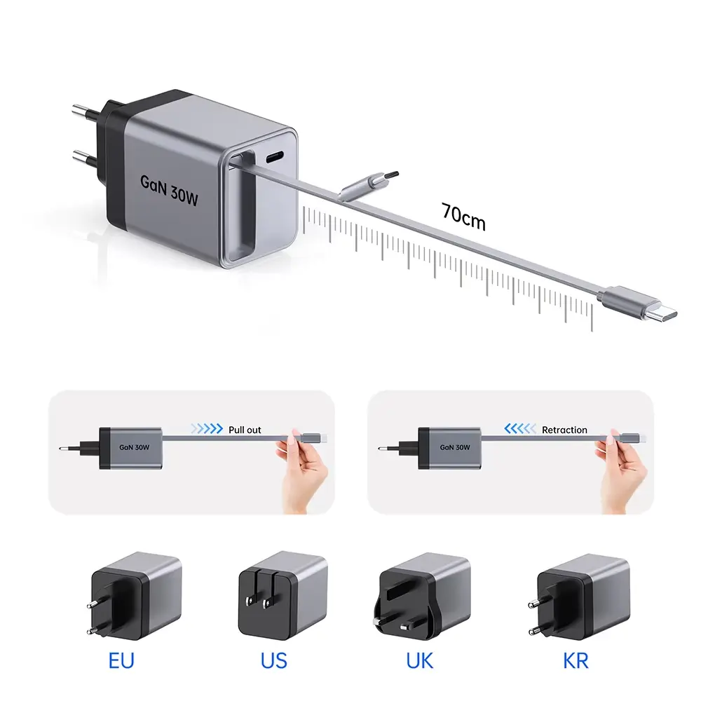Nombre del producto: Cargador rápido de cable estirable GaN PD de 30 W |