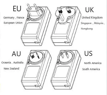 Tipo de enchufe de CA | EE. UU./UE/REINO UNIDO/AU o más | |