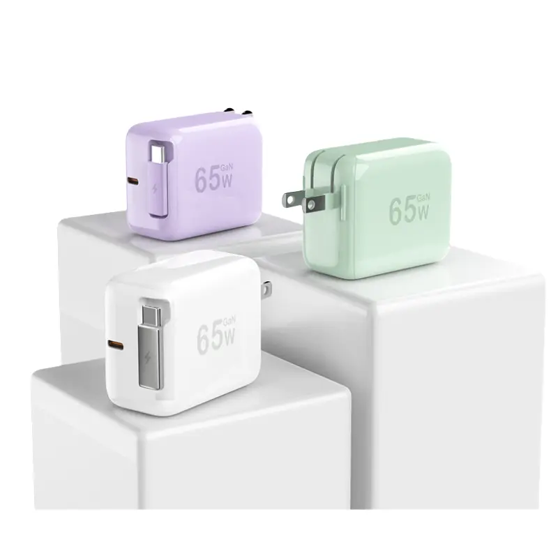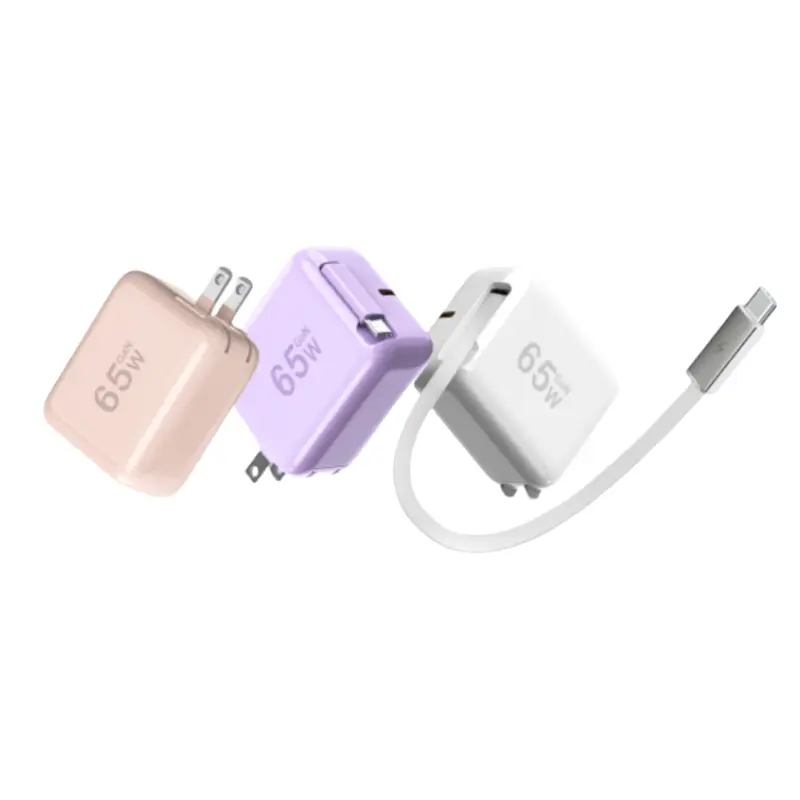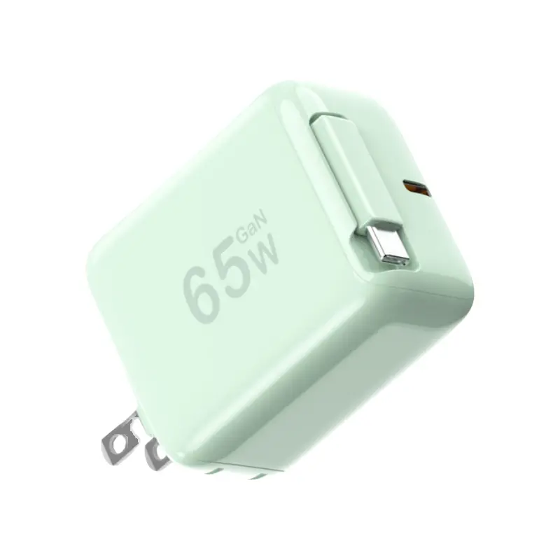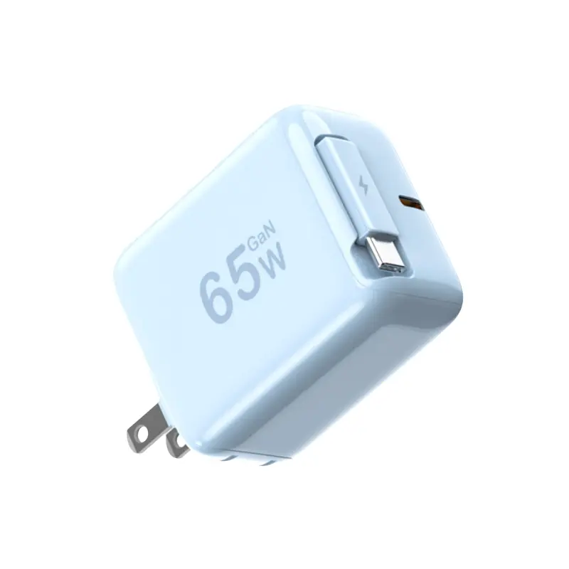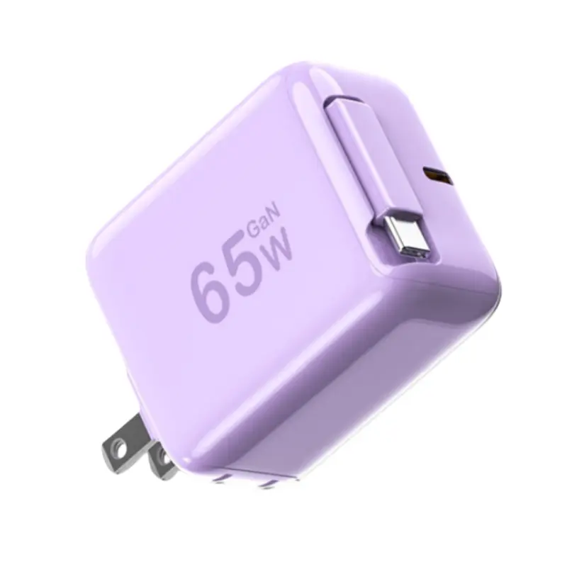 Equipado con cables retráctiles: el adaptador de carga rápida de 65 W está equipado con un cable de datos USB-C conveniente y que no se enreda de 1 metro (2,3 pies) de largo. Este cable se puede extender y retraer suavemente, evitando así el desorden de cables enredados y garantizando que puedas cargar en cualquier momento.
