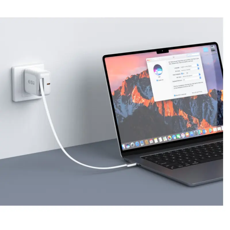 Entrega de energía de alta velocidad de 65 W: Ofrece carga rápida para computadoras portátiles, tabletas y teléfonos inteligentes con tecnología avanzada PD 3.0, cargando una MacBook Pro al 50 % en solo 45 minutos.