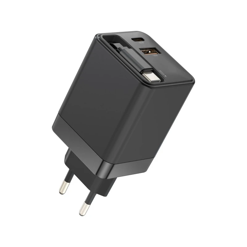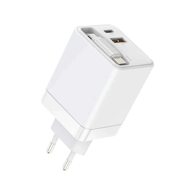Su único puerto USB-C proporciona la máxima potencia para cargar rápidamente su computadora portátil, teléfono inteligente, tableta y otros dispositivos esenciales. El enchufe estadounidense versátil y plegable garantiza un perfil elegante y apto para el bolsillo, mientras que hay enchufes intercambiables (EE. UU., UE, Reino Unido) disponibles para cumplir con diferentes estándares regionales, todos con certificación completa para un uso seguro y confiable en todo el mundo.