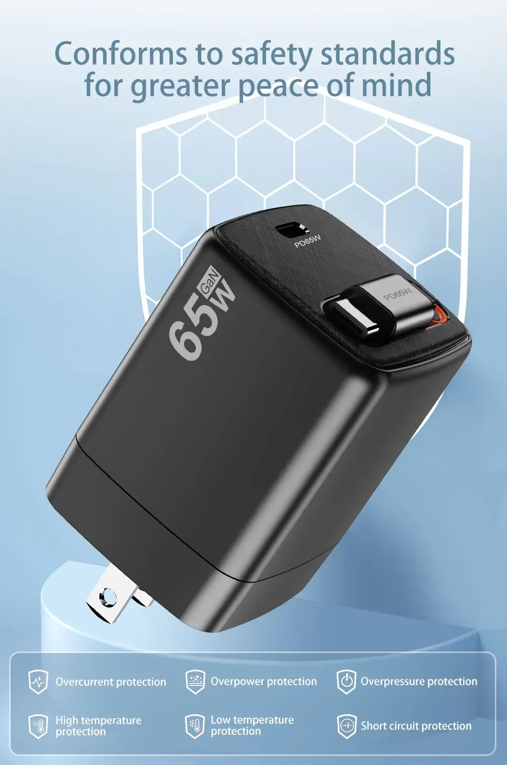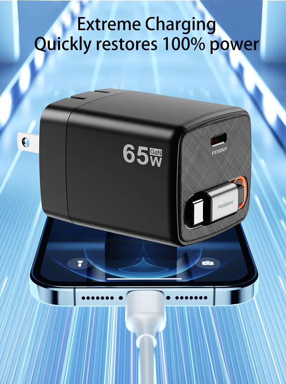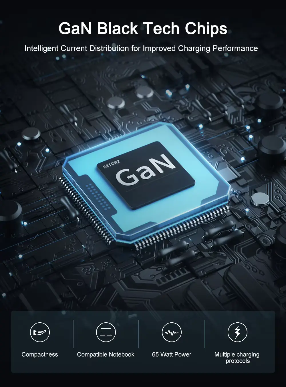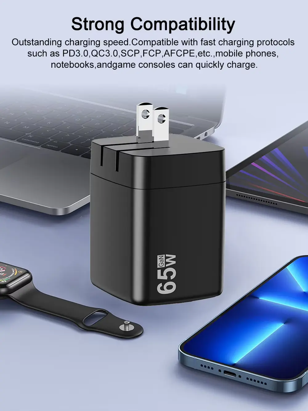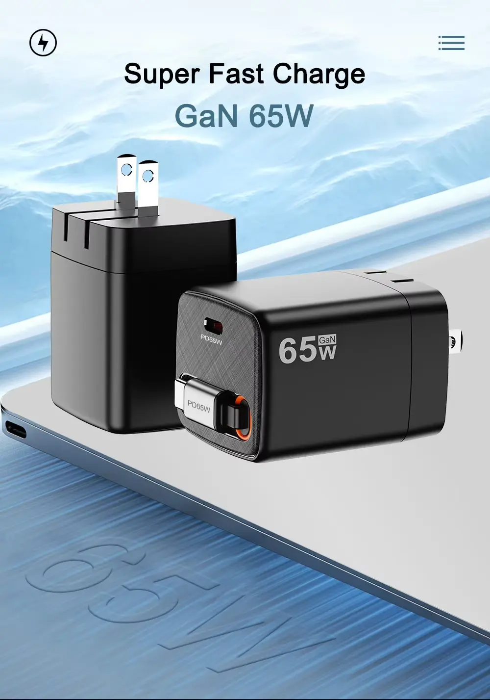 Carga de alta velocidad de 65 W: alimenta computadoras portátiles y teléfonos de carga rápida.