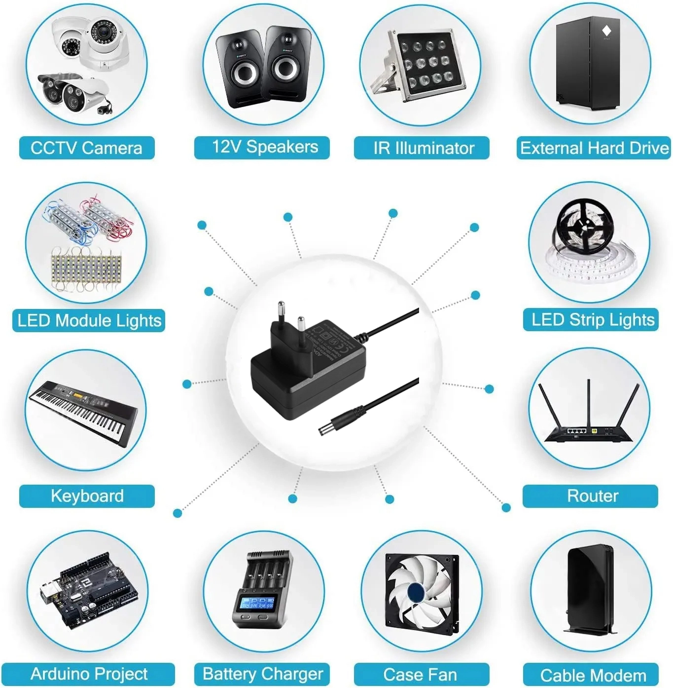 Adaptador de corriente AU, Reino Unido, EE. UU., UE, enchufe de CA de 12W |
