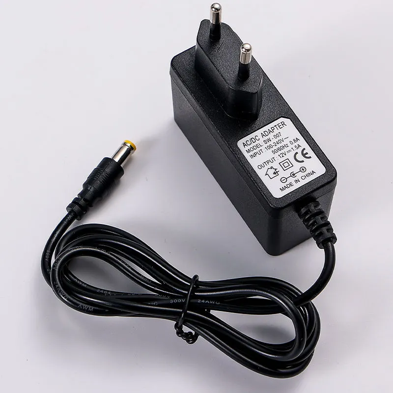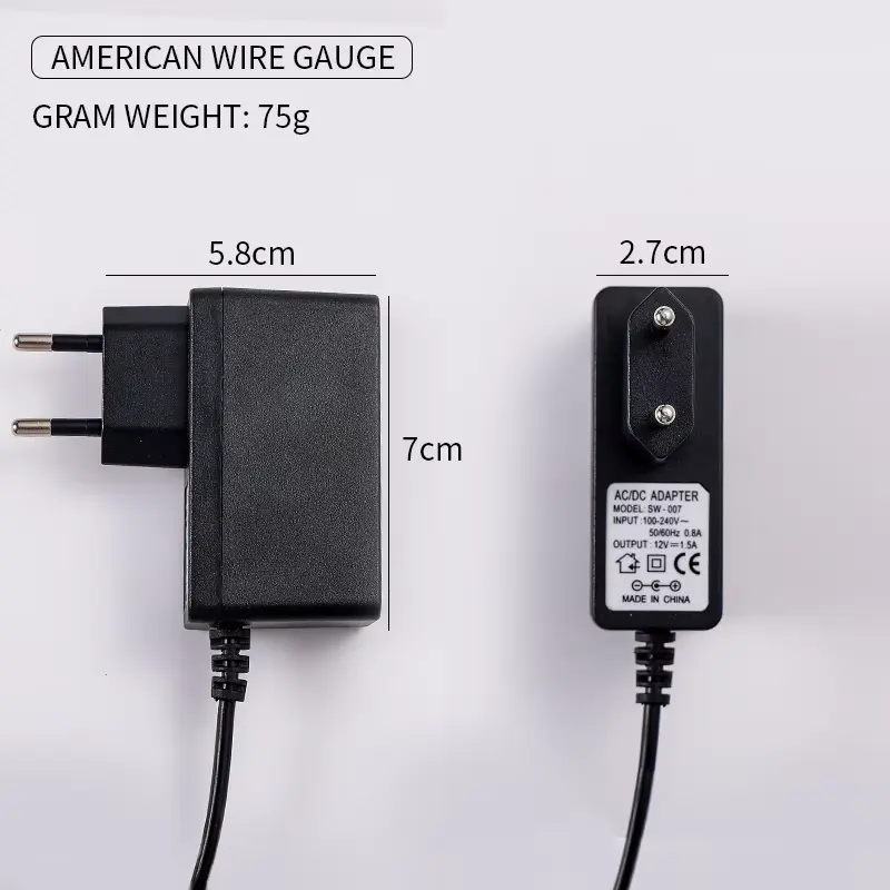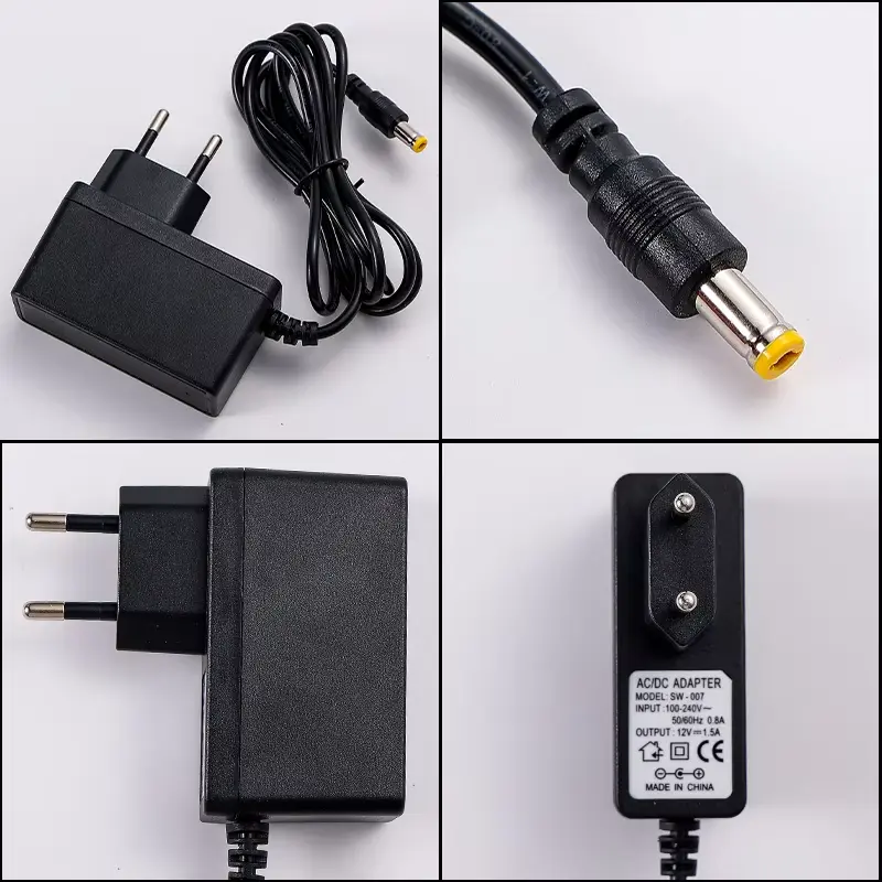 El adaptador de corriente conmutado para montaje en pared UE de alta calidad de Starwell es un adaptador de corriente conmutado compacto y de alta eficiencia diseñado para convertir corriente alterna (CA) de un tomacorriente de pared estándar en una salida de corriente continua (CC) estable y regulada de 12 voltios. Con una capacidad máxima de salida de 1,5 Amperios.