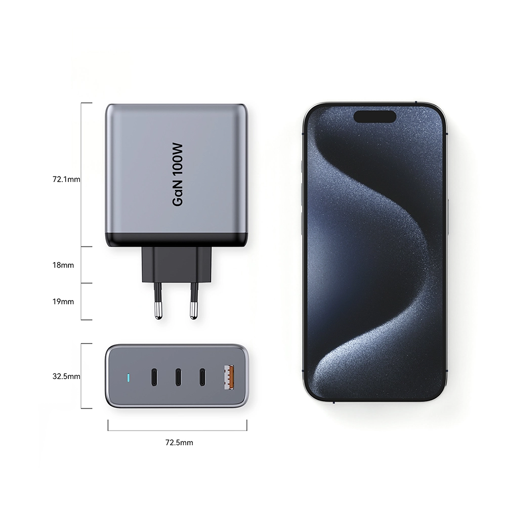 Cargador rápido GAN 100W para computadora portátil Especificación CE