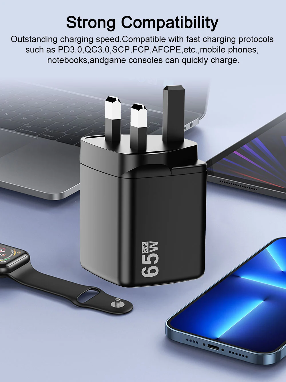 STARWELL, un fabricante chino de confianza, ofrece este cargador rápido de 65 W con enchufe británico asequible y de alta calidad.