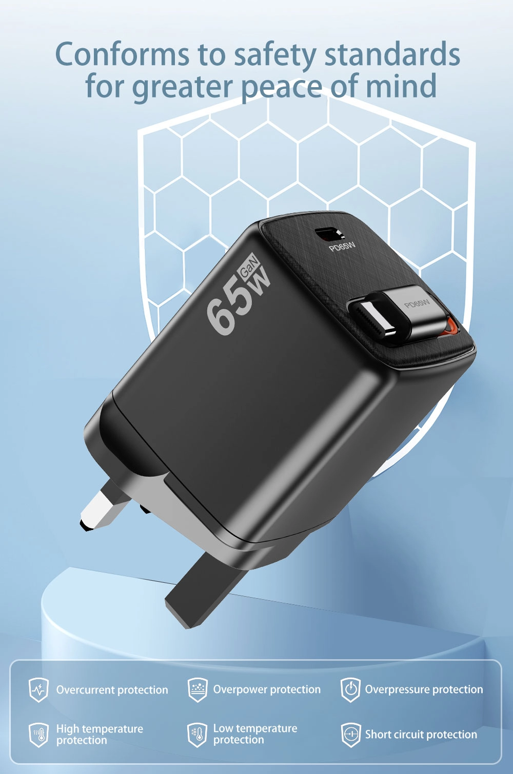 Especificación del cargador rápido tipo enchufe del Reino Unido de 65w: